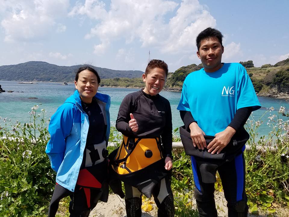 2日間とも時々雨がパラリと降るものの、全般的に天気が良く3人して日焼けで顔が…(笑)。水中は春濁りで透視度6mといったところ。海藻だらけの海でしたが春が来たんだなーと感じます。