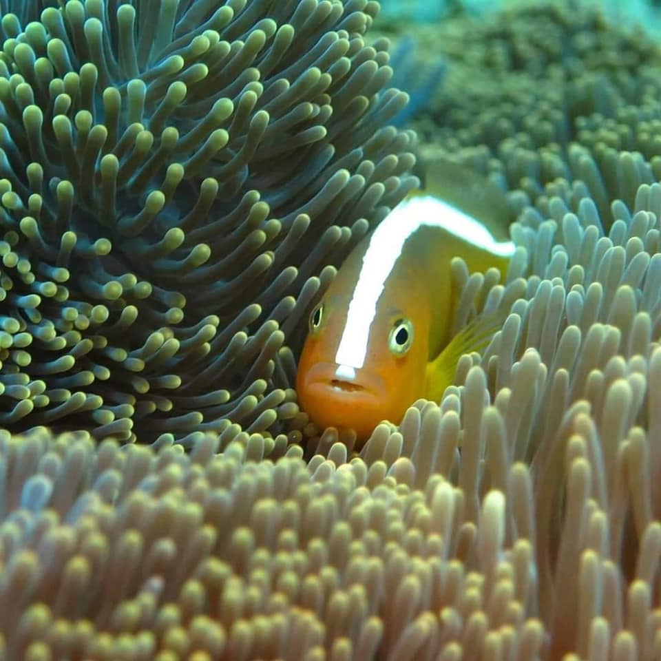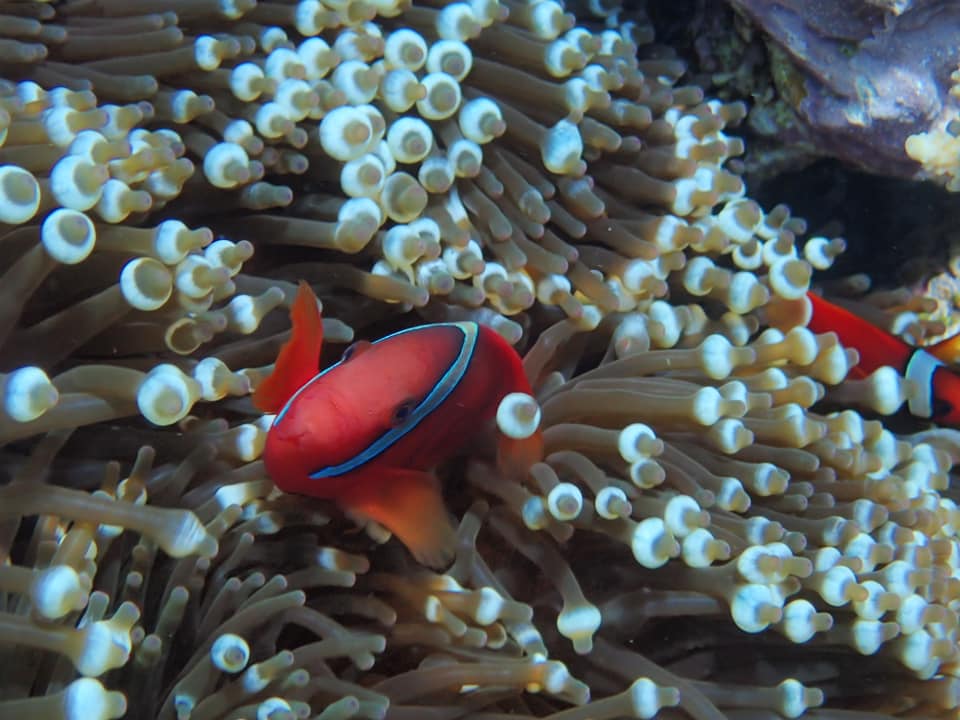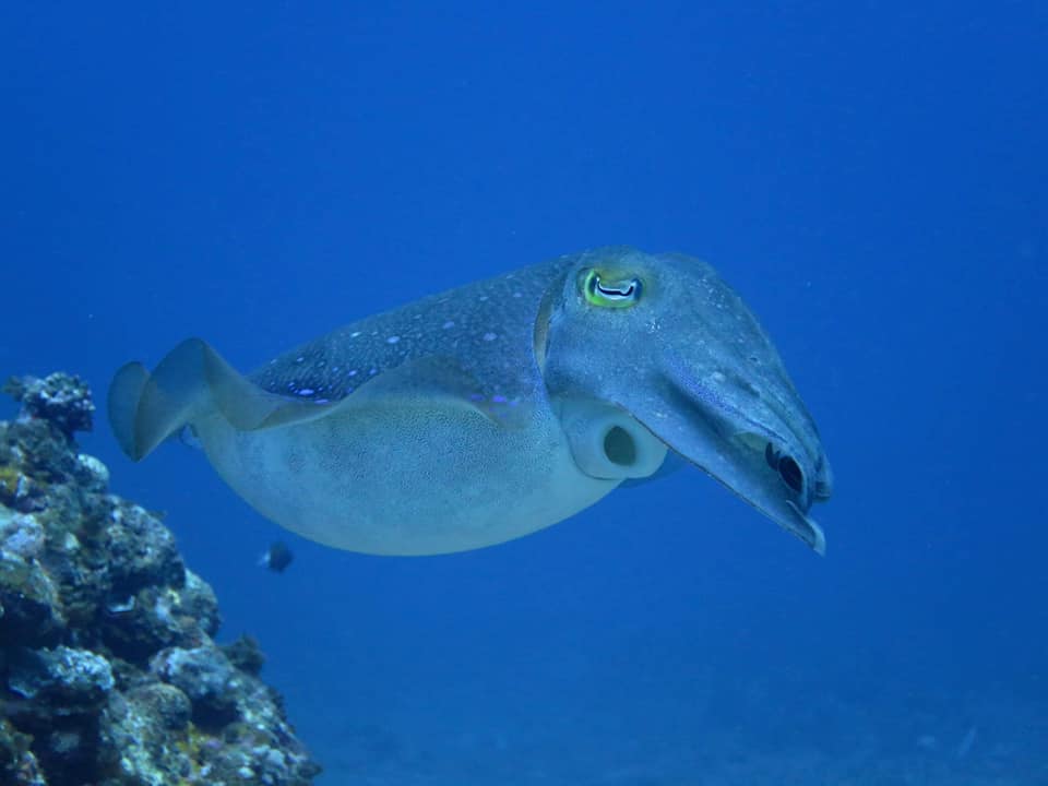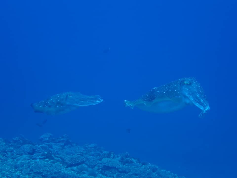 この時期はコブシメ(コウイカ類)の繁殖期です。以前は「ワジ」でよく見かけていました。で、「ワジ」へ。やっぱりいた~!あちこちでラブラブな様子を目撃。見ていて飽きません。珍しいセジロクマノミも。