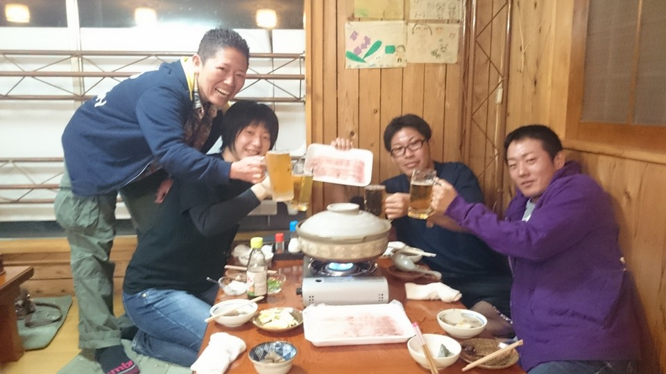 昨夜はダイバー仲間の二人が応援?に駆けつけ、だるまで「きな粉豚しゃぶしゃぶ」でした♪