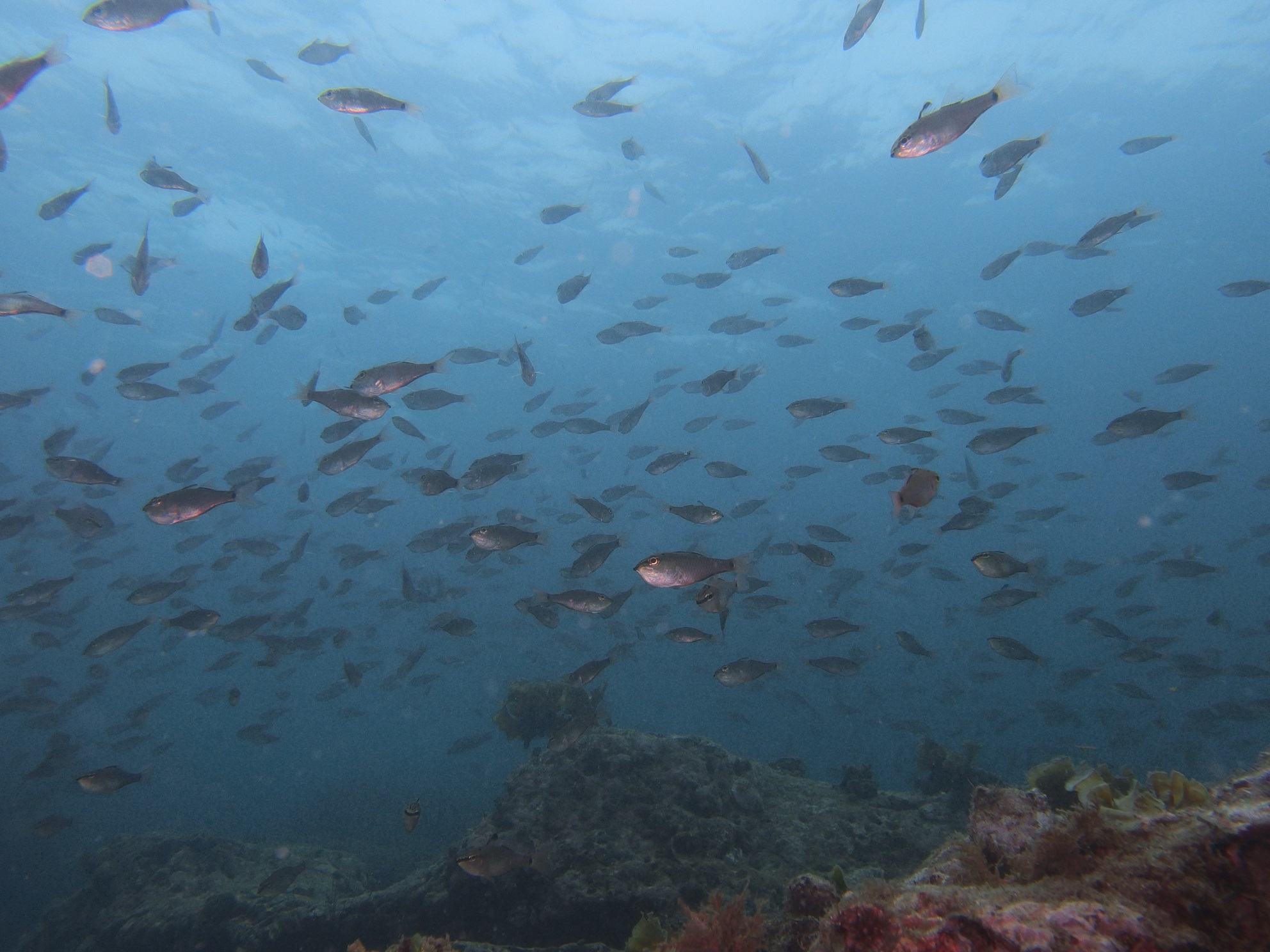 透明度は8mくらいで、ここのポイントにしてはよろしくない状況…。やっぱり台風11号の余波でしょうか。しかし、水温23.5℃前後で5mmウェットスーツで快適でした。お陰様で(?)宮古島行く前にジョギングしててひどく転んだ時の膝のカサブタが、エキジットしたらとれてました(笑)。おーい!どこ行った~?カサブタなくなって痛いんだけど!