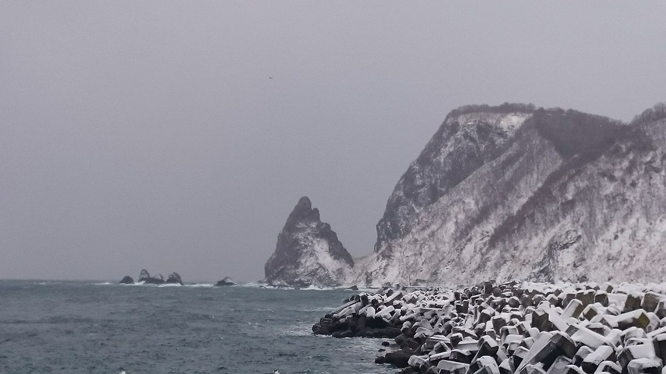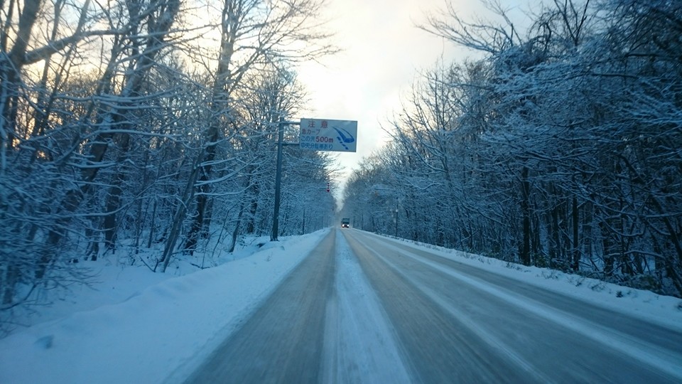 冬の北海道、峠は路面がツルツルです。