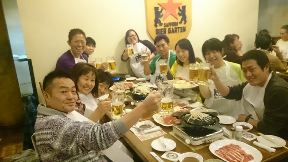 恒例のサッポロビール園ダイバー忘年会はいつも通り盛り上がりすぎて、最後はマイナス気温の中での半袖記念撮影。おかしな人たちの集まり…。(笑)