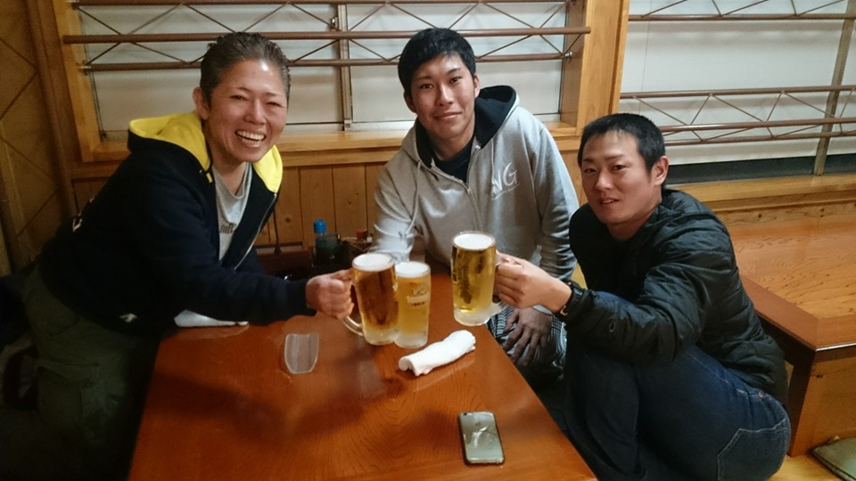 温泉にゆったりつかったあとは、だるまで新年会でした。まあ、3人だけなんですが…。(笑)