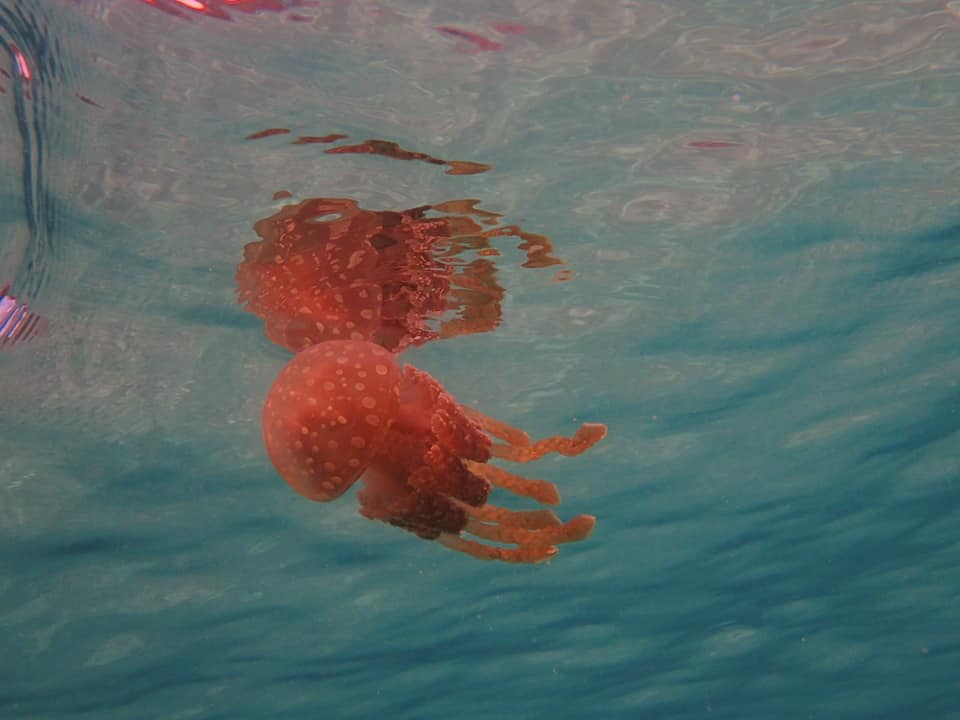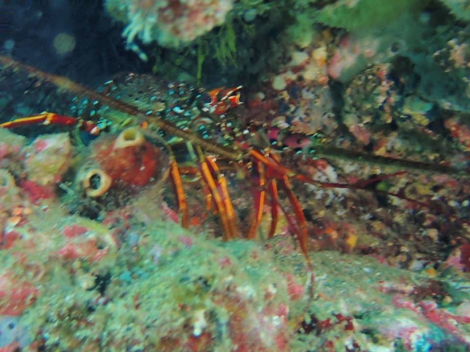 私の伊勢海老(笑)はこの日も健在でした。タコクラゲやイバラカンザシはきれいで可愛いです。そうそう、ガイドをしていたらお腹にズドーンと衝撃が!でかいツバクロエイが体当たりしてきました(笑)。砂地に潜んでいたちょうど真上を通過したらしい。あっという間にどっかへ消えてしまいました。ごめんごめん!