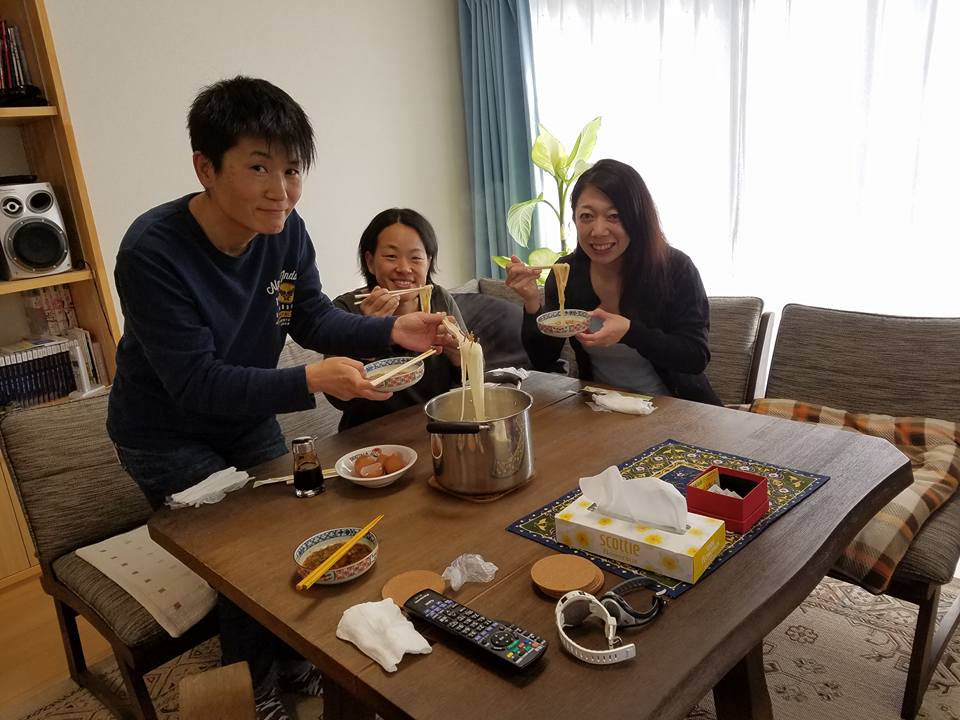 昼ご飯は、先日、五島で仕入れてきた五島うどんの地獄炊き。皆さん初めて食されたらしく、旨い旨いと大好評でした。五島に行かなきゃ!北海道に行かなきゃ!伊江島に行かなきゃ!と話はつきません。いくべー~!!