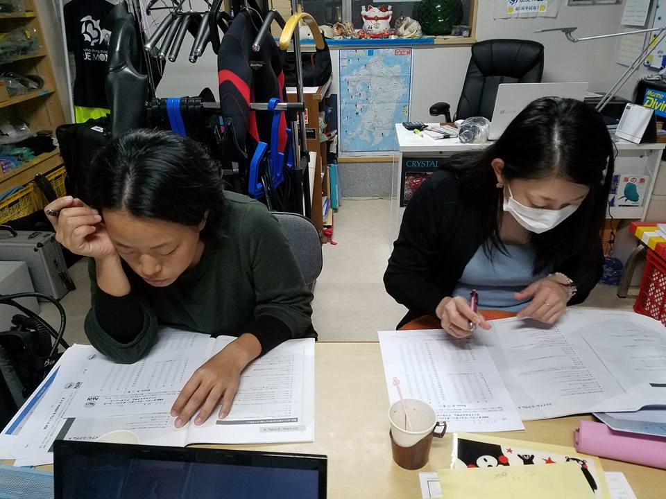 本日からエントリーレベル(オープンウォーター)の講習が始まりました。これからどんどん寒くなるというのにチャレンジされるお二人、さすが前職関係者です。でも、これから透視度も上がり、海は混まないし楽しいですよ♪