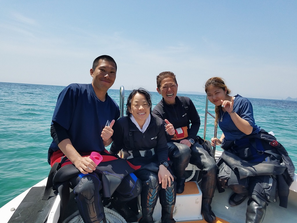 九十九島ボートDIVEは、現地ショップの「わんだーらんど」さんにお世話になりました。3月に転属となったHちゃんは千葉から、そしてMちゃんは埼玉からわざわざ来て頂きました。熊本からはスタメンのにっしーが参加でした。皆さん本当にありがとうございます!!