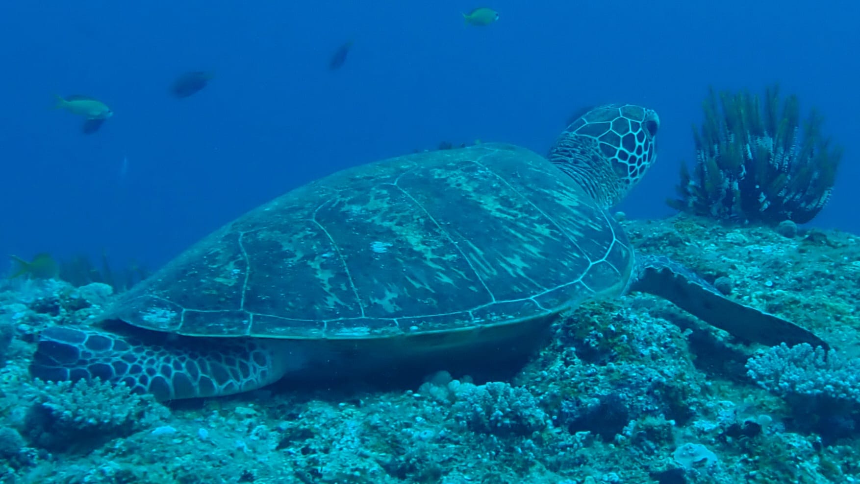「オホバ・ハーフ」はいつも結構流れており、初心者のお二人は大丈夫か?カメのいる離れ根に行けないかも…と心配しておりましたところ、なんとほぼ流れ無し。よっしゃ!で離れ根へ一目散。カメ、ちゃんと3匹ほどおりましたー。カメを見たかったお二人に見せれて良かったです。