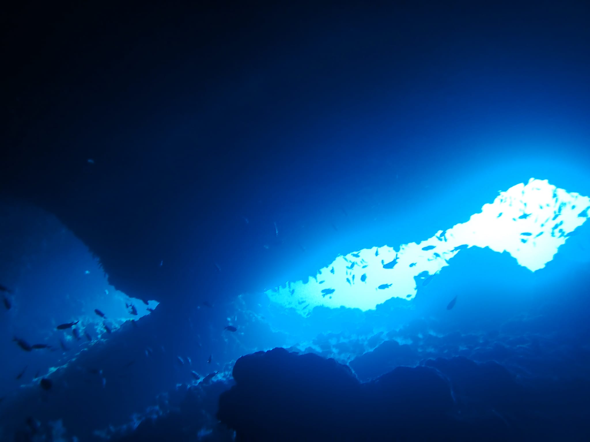 初日のダイビングはまず「オホバNo.1(大洞)」へ。相変わらず洞窟からの光が綺麗です。