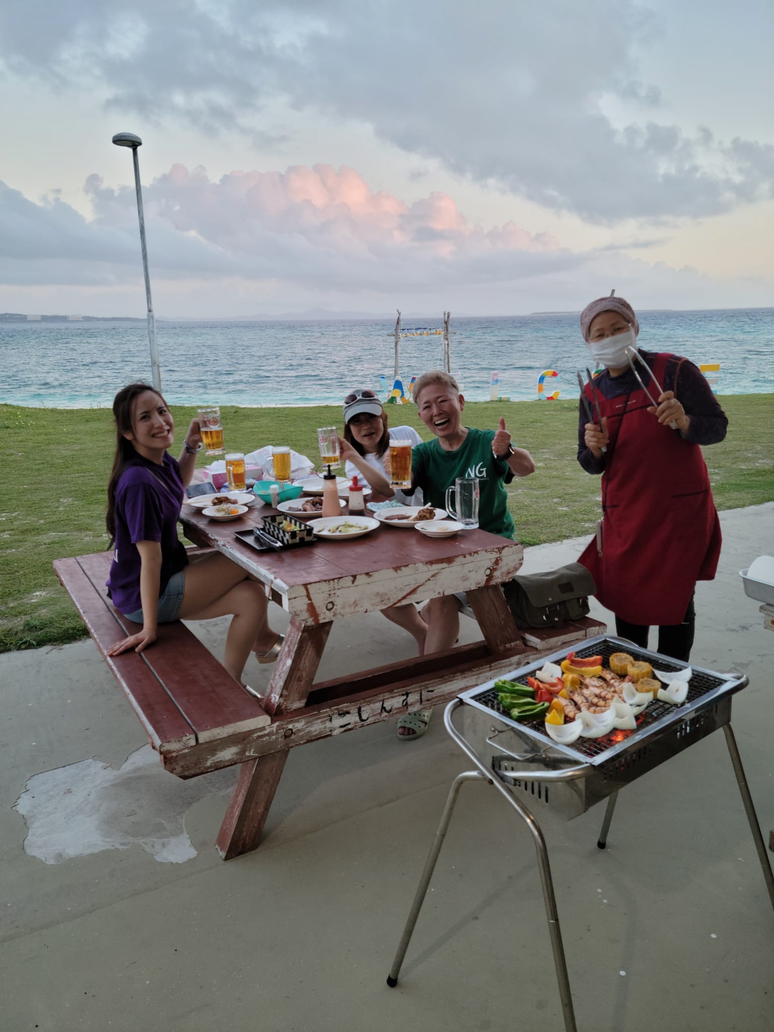 夕食は伊江島ビーチの「にしんすに」でBBQ!伊江牛、甘くて柔らかくて最高でした。いつも特別席を準備して頂いてます。ん?それくらい貢献してる?(笑)