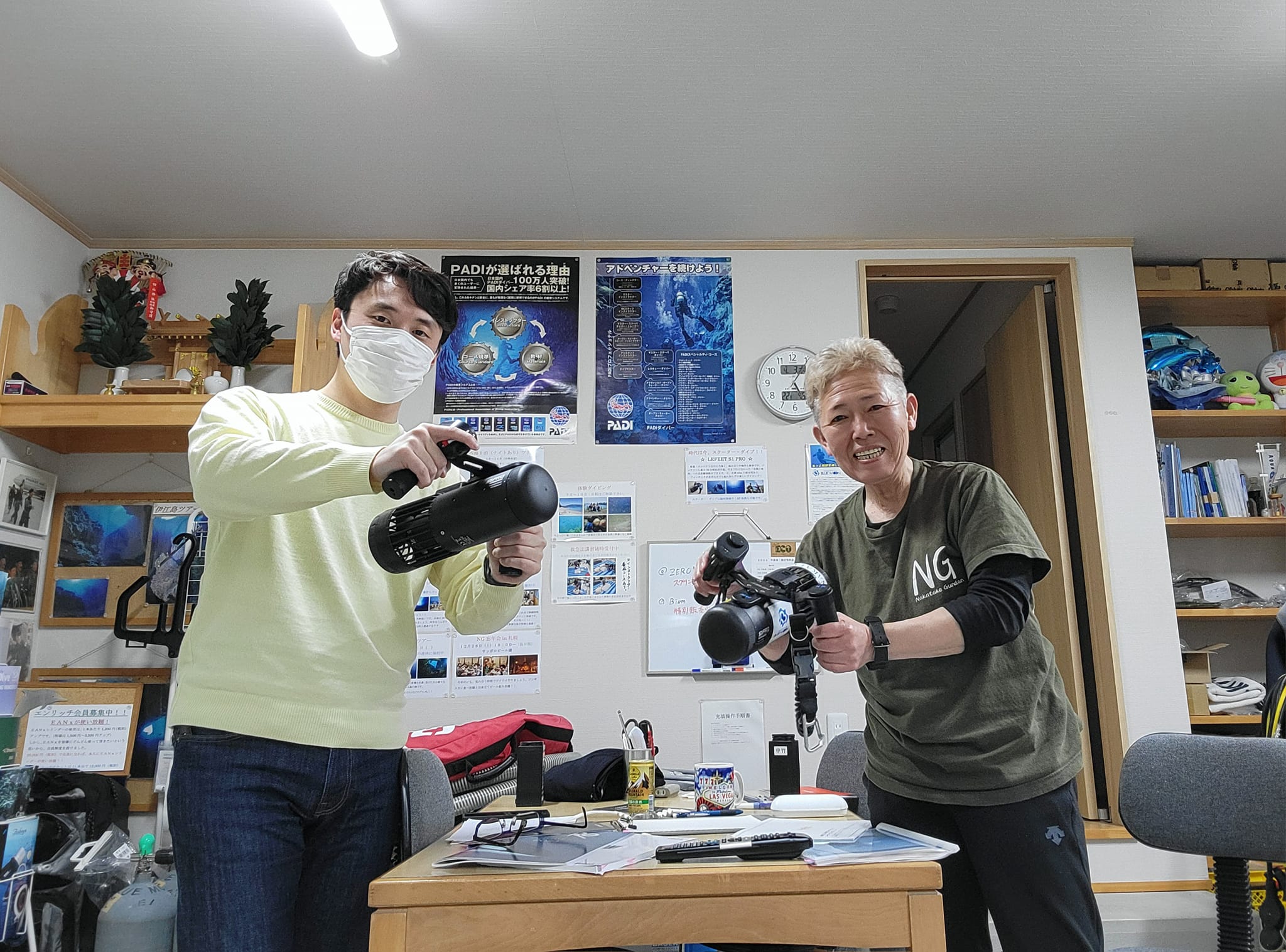 M君は、これまでレンタルのスクーターで水中をかなり楽しまれていましたが、昨年末、念願の自分のスクーターを購入されました。しかしまだ1回も使えていません。同じく購入されたカメラ(TG-7)もしかり…。いい加減に潜りたいよねー…。