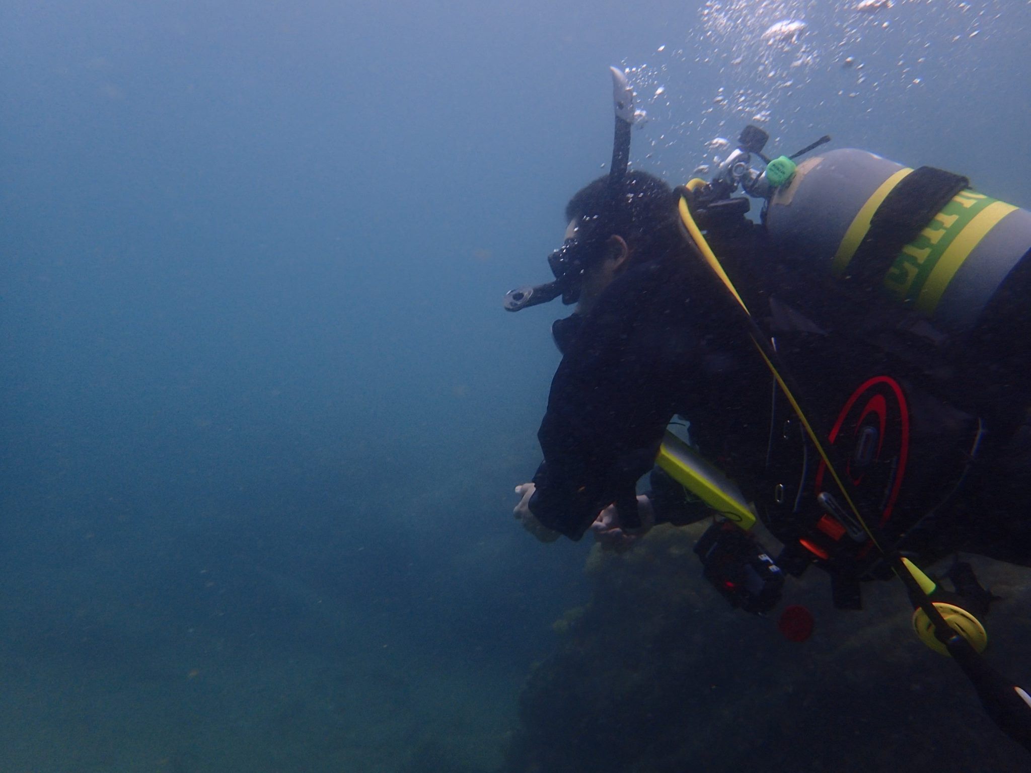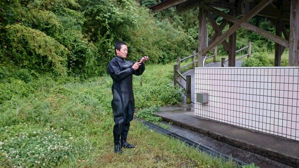 雨は、降ってほしくない時にはちゃんと止んでくれました。水温は21.6℃。ドライスーツのインナーは半そでTシャツとジャージズボンで快適!
