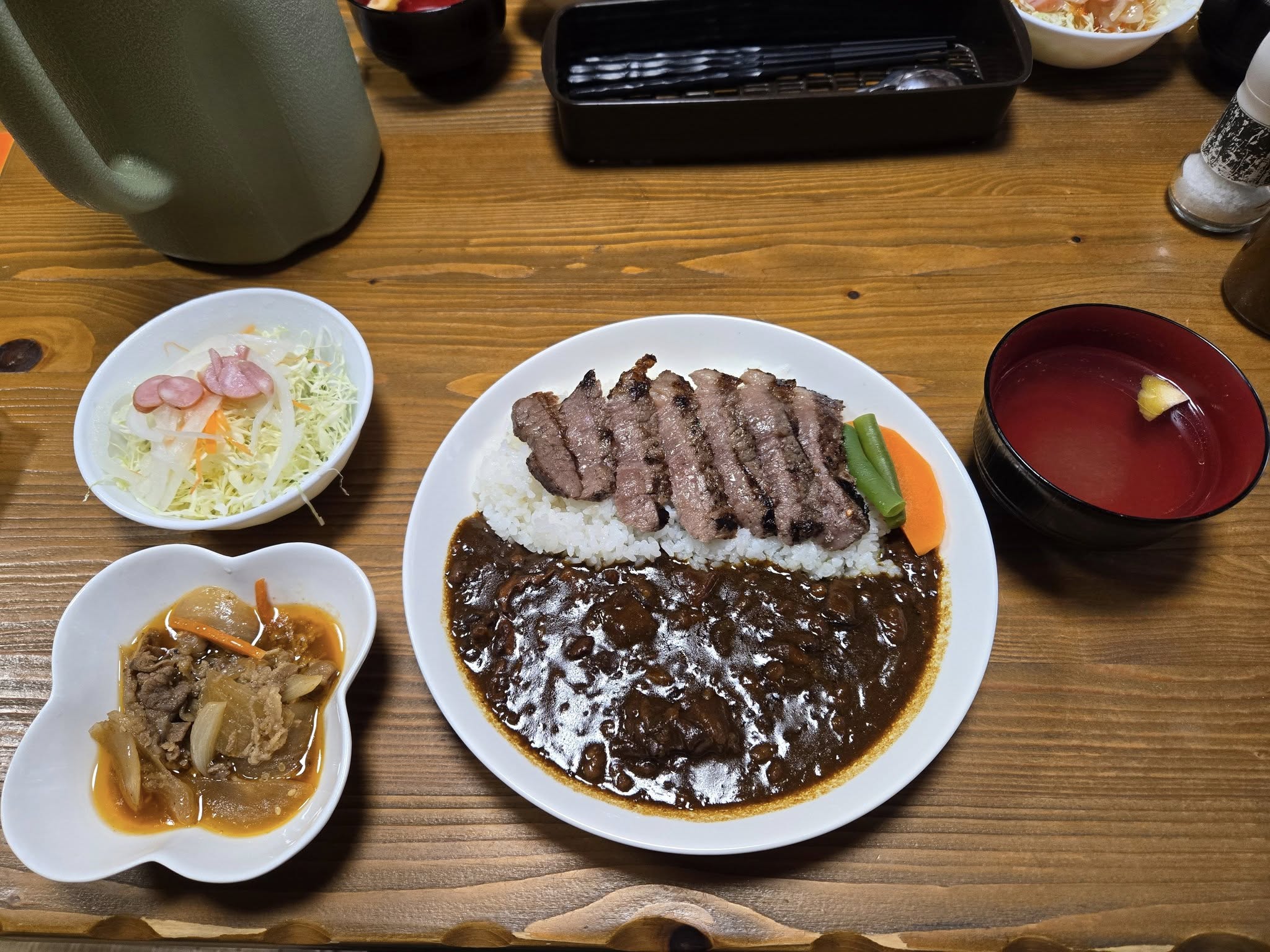 前日、愛知からSちゃん到着!nariと3人で柳川へ行き、清柳食産さんのステーキのせ黄金カレー!!最近これにハマってます。しっかり煮込んだトロトロの牛肉がゴロゴロ入ってるのに、これまた良い焼き加減のステーキがのっかってて、お腹いっぱいで¥1,320!コスパ最高で旨すぎる!お肉屋さんのカレーってすごい!!