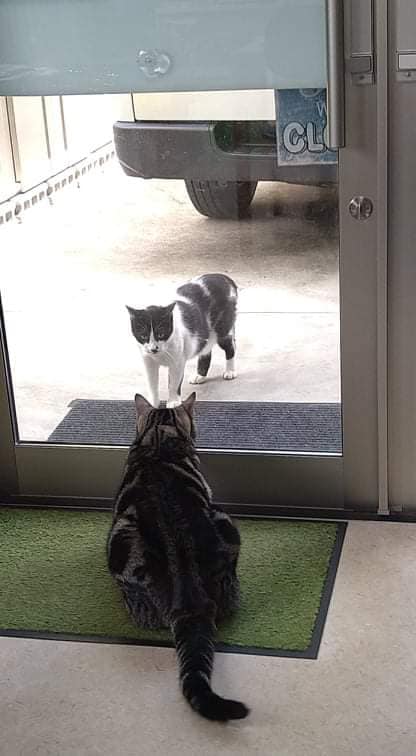 お留守番のトトくん、ご飯遅れてゴメン!!今日も近所のぶっち(仮称)と窓越しに戯れていたのかな?(笑)