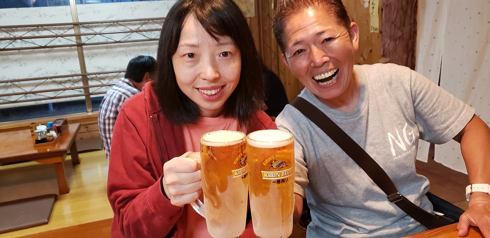 夜はいつものところで乾杯!海況悪かったけどリフレッシュできて話はつきませんでした。
