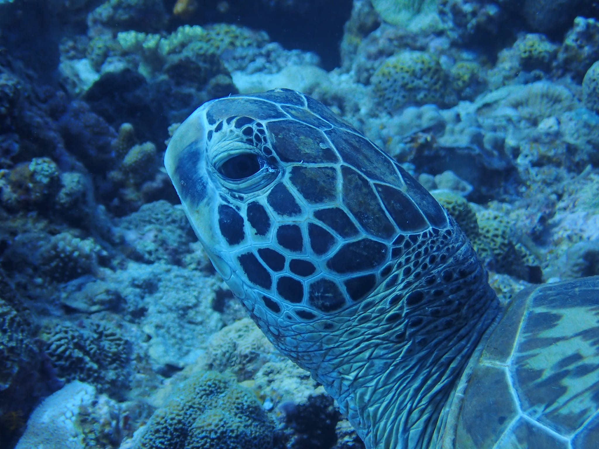 8月10日(水):NG合宿夏の陣in伊江島 2022.08.28 未分類 この日からしばらくカメ三昧! スクーターの音が静かなのと無駄な動きがないせいか、カメや魚の群れが逃げません。低速ではカメと一緒に泳げます。 高速モードで遠くで泳いでいるカメの方に向かったら、カメに追いついた挙句、追い越してしまった(笑)。「えっ?」という表情でこちらに顔を向けるカメ。スクーター、恐るべし。 スクーター、疲れないので夜も元気です!!(笑)