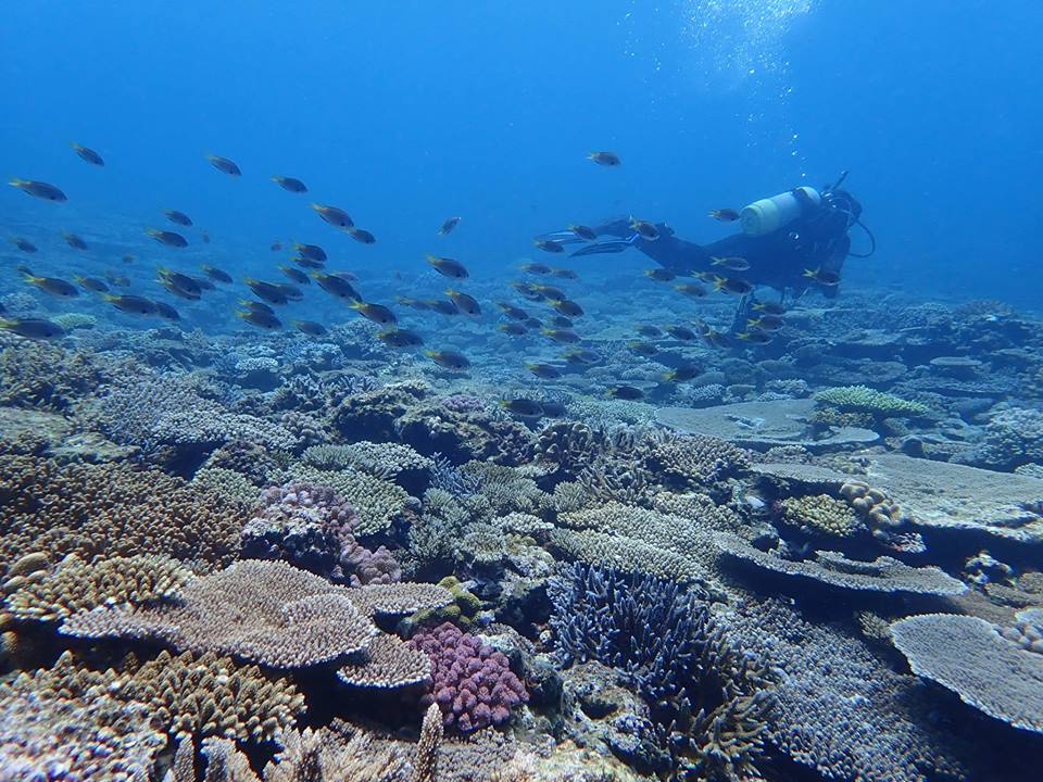 中ノ瀬は、サンゴの白化減少で以前はほぼサンゴが死んでしまっていましたが、今回久しぶりに潜ると、サンゴが復活して生き生きしてました。