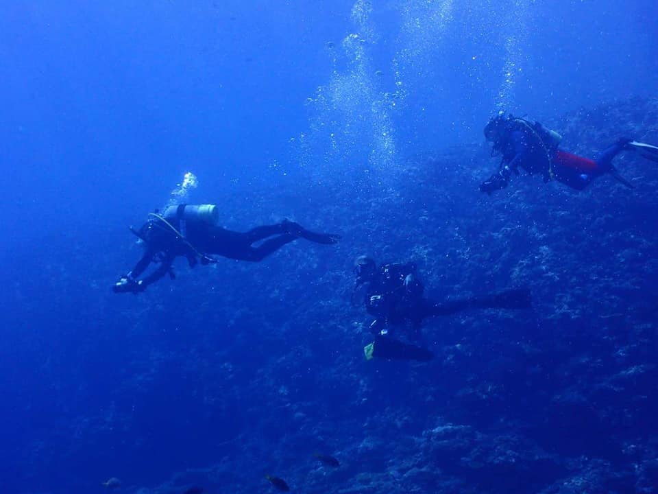 地形ポイントでこの日も飽きることなくスクーター。みんな楽チンにハマってます。あ、実は私、自分のスクーターを貸したので伊江島での後半戦は脚力勝負でした。うん。よく追い越された。ガイドなのに…(笑)。この日は水中も陸上もコントな一日に。