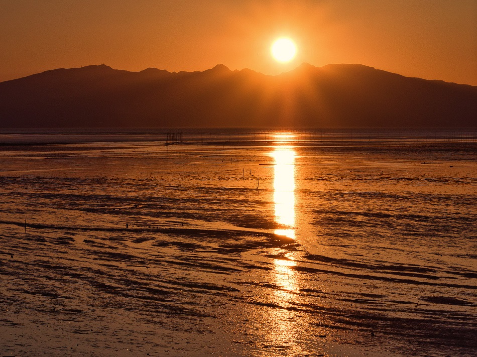 講習が終わって、荒尾の干潟にご案内しました。ちょうど夕日が沈みかける頃で美しい光景でした。Tさん大喜び!…が、明日の海洋準備と買い物がある私は「買い物して帰りますね~。ごゆっくり~♪」とTさんを置き去りに。後で、モデルにでもなってあげればよかったとビールを飲みながら猛省致しました(笑)。