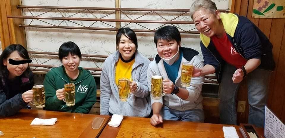 11月10日(水):サプライズ!! 2021.12.01 未分類 有明フェリーでのんびり帰り、怪しい人がドアを開けたところに、いきなり愛知組が音楽と垂れ幕でのお出迎え!怪しい人の激励です。これ、8月から怪しい人に内緒で密かに準備してたんですよね。怪しい人のインストラクター試験日が決定しました。頑張れよ~!!早く私を楽にしてくれ(笑)。 勿論、宴は「だるま」で。もつ鍋、ムカゴ、銀杏、差し入れの手作りおはぎ、どれも大変美味しく頂きました。 さて、せっかくだから陸も海も楽しみましょう!!
