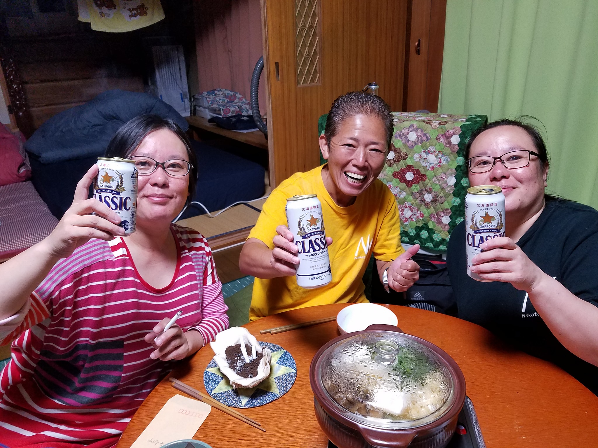 この日の夜は積丹を離脱し、七夕姉妹のかずちゃんちで一泊。美味しい鍋料理をありがとう!!いつもいつもお世話になってスミマセン!九州ではしっかりお世話させて頂きますので(笑)。