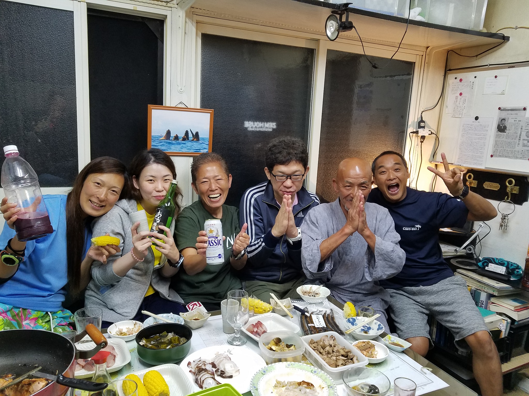 とりあえず、温泉の後は明日の神威岬行きを信じてかんぱーい!!明日は朝6時に出港だ!早く寝よう!!…って社長と私には無理な話でした(笑)。それでも早めにはお開きしましたよ。早めにね(笑)。