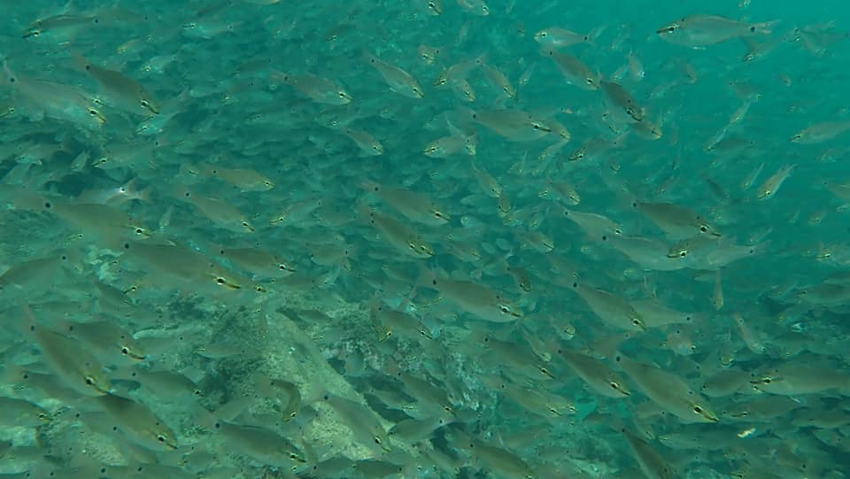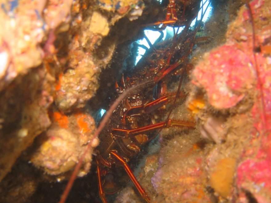 天気が良く海洋は穏やか。ビックリするほどのでかい伊勢海老が密になっていたり、クロホシイシモチが進路をふせぐほど群れていたりと、講習を進めながらも賑やかな海を楽しみました。